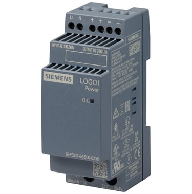 DIN Rail Power Supply, 24V, 1.3A, 31.2W, Adjustable, Siemens